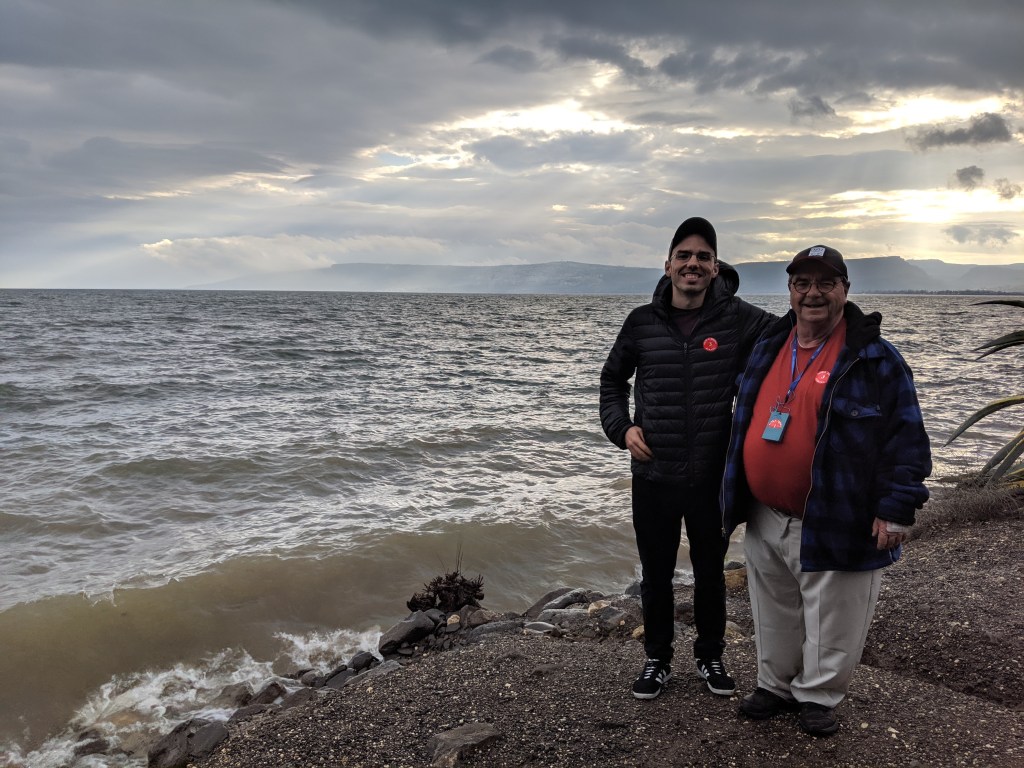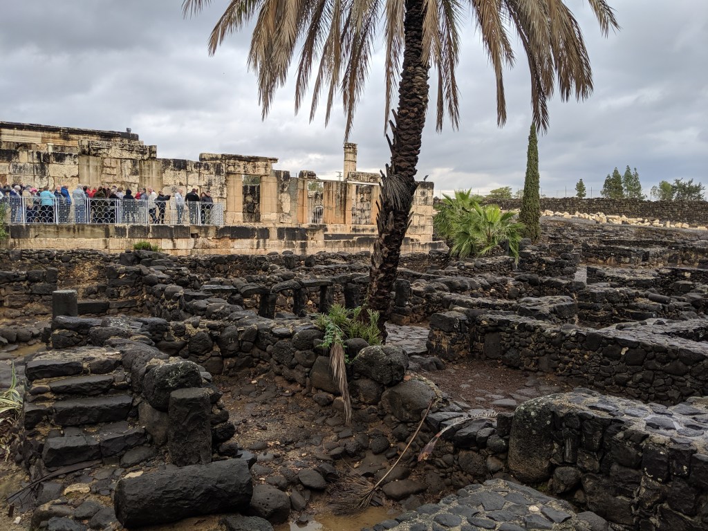 By far the best part of the day—and of our trip so far—was going to Capernaum and the Sea of Galilee. In the city of Capernaum, we saw the “exact” place where Jesus preached in the Capernaum synagogue. We also walked down to the edge of the Sea of Galilee and saw the “exact” place that Jesus called the first disciples, Simon Peter and Andrew (Matthew 4:18-20). Interestingly, because of earthquakes and war, many of the earliest churches had collapsed and then built over. During the last say seventy years, a lot of work has been done to uncover the original and ancient structures. At the same time more modern churches—with the same names—have been built on top of the originals and used for modern worship. Thus, we saw some superb architecture both ancient and modern.