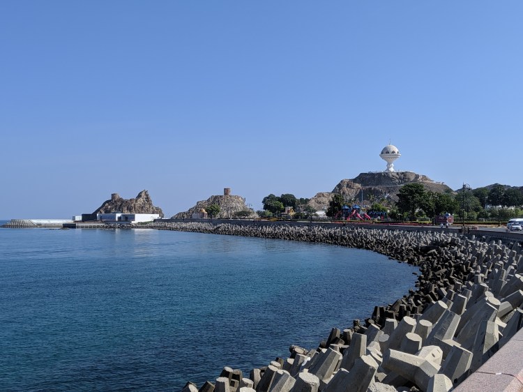 I am ashamed to say I had never heard of Muscat or Oman prior to our voyage. Yet, after we arrived and walked around the city of over a million people, as we were told, we found Muscat to be a delightful place. The mostly Muslim people we encountered were quite friendly and easy to engage. We visited a large park and walked three or so miles along a beautiful sea wall. In addition, we went through the city’s souk—which is an Arabic word for “marketplace.” Neither of us are big shoppers, so I am sure we were a disappointment to all the hundreds of shopkeepers and entrepreneurs.