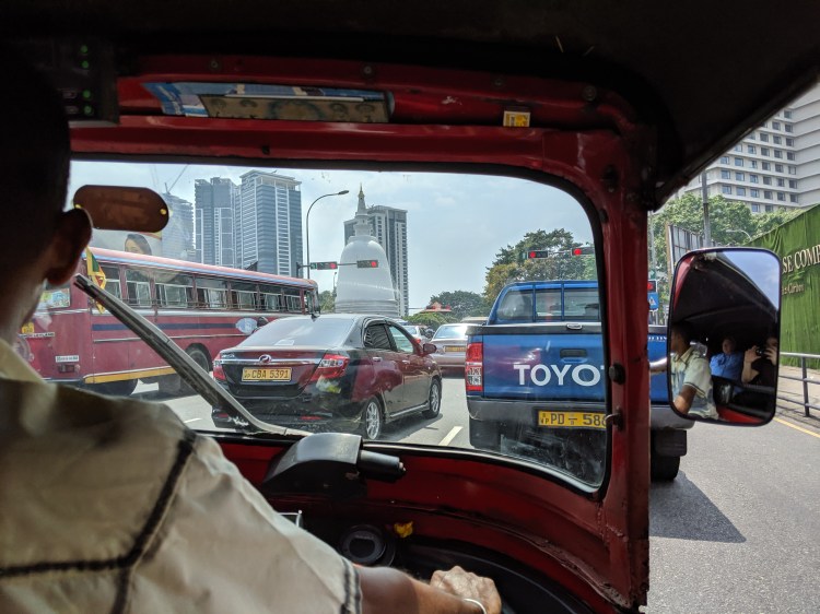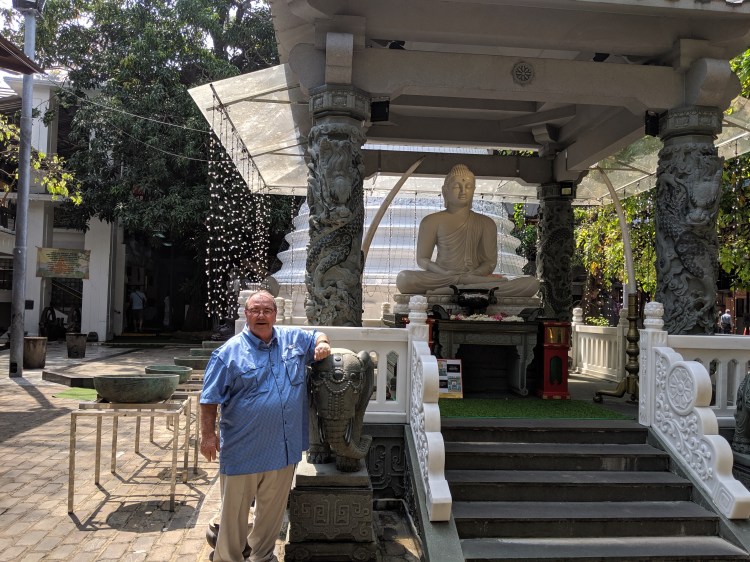 As I am typing this, we have just returned to our ship from a day in Colombo, Sri Lanka. Today is day 27 of our excellent journey. In Colombo, we ended up renting a Tuk Tuk for three hours. A Tuk Tuk is like a tricycle that is placed on a motorcycle frame with two seats in the back and a driver in front. It is comfortable with three occupants, but more than that is well-nigh impossible to visualize. We then toured around Colombo for our rental time and saw Buddhist temples, Islamic Mosques, and Christian churches. We saw schools and a student protest that looked to be comprised of about 3000—4000 thousand students strong. It had something to do with student scholarship endowment as all schools in Sri Lanka are free from tuition. We were told that the population of Colombo proper is about 750,000 people—about the size of greater Fort Worth.